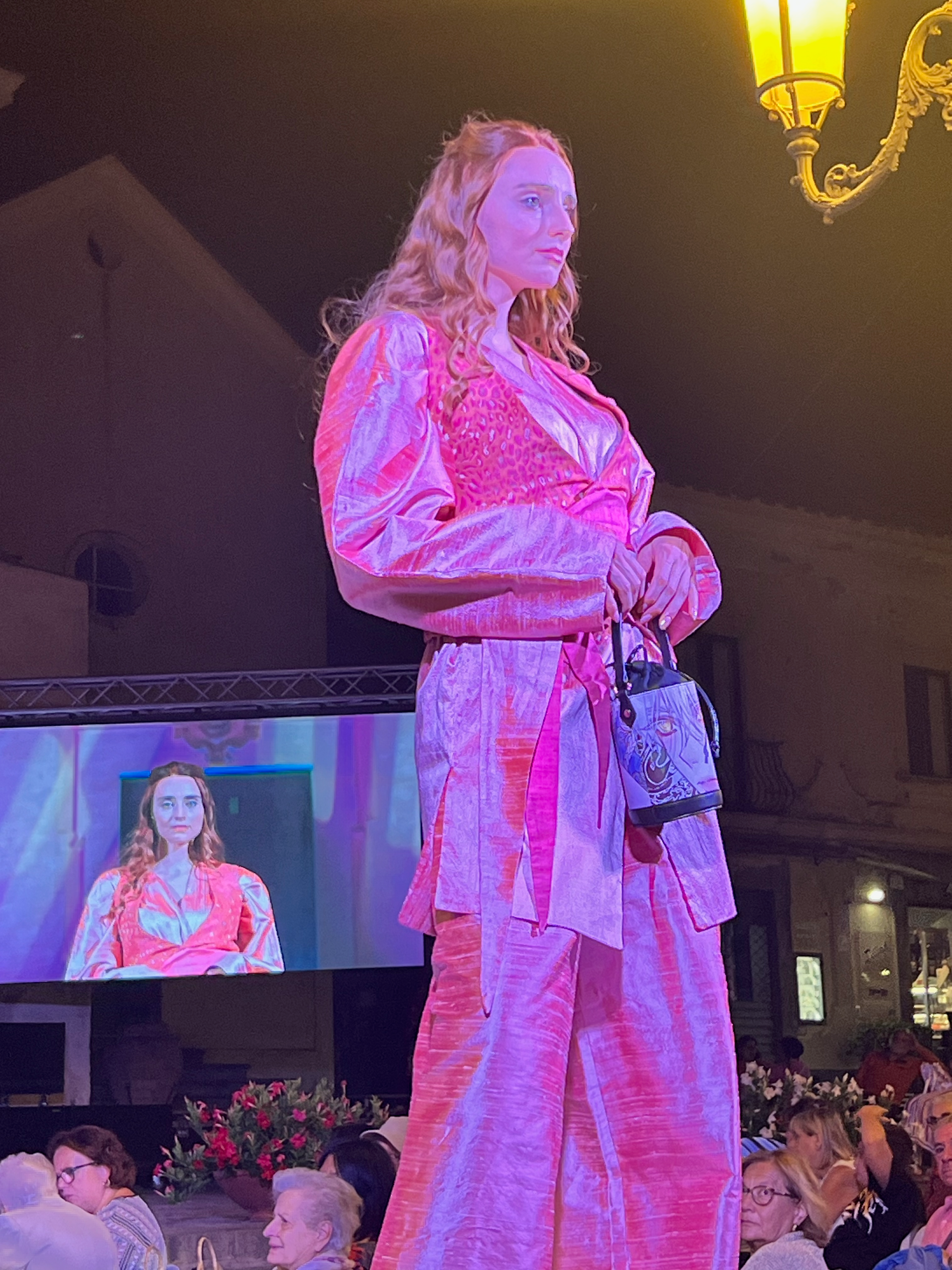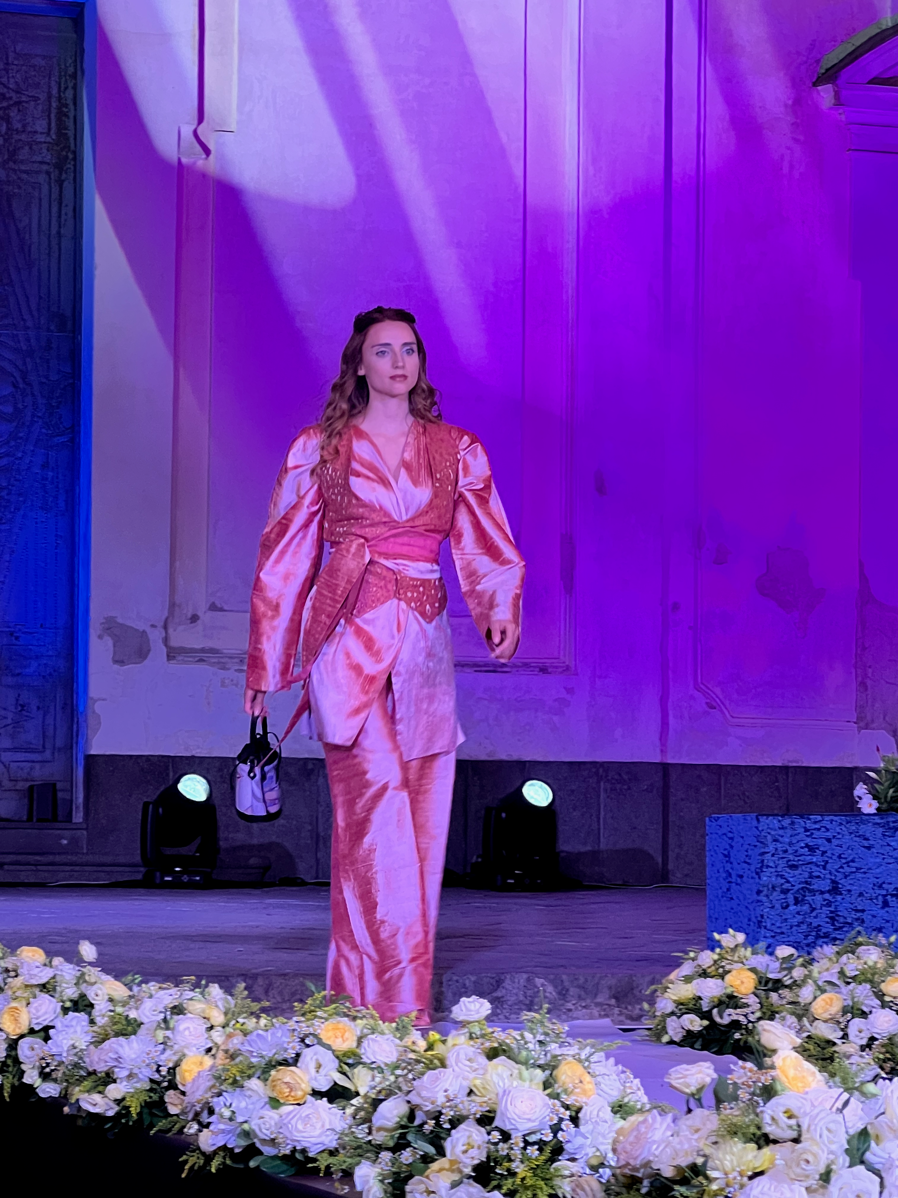 Il capo può essere indossato sia come miniabito (lunghezza sopra il ginocchio), sia come giacca-kimono su gonne o pantaloni, o come camicia preziosa sotto un gilet, ad esempio il Gilet Maculato Rosa in seta di San Leucio, come proposto in occasione della sfilata di EVAlab a Massa Lubrense il 2 agosto 2025.