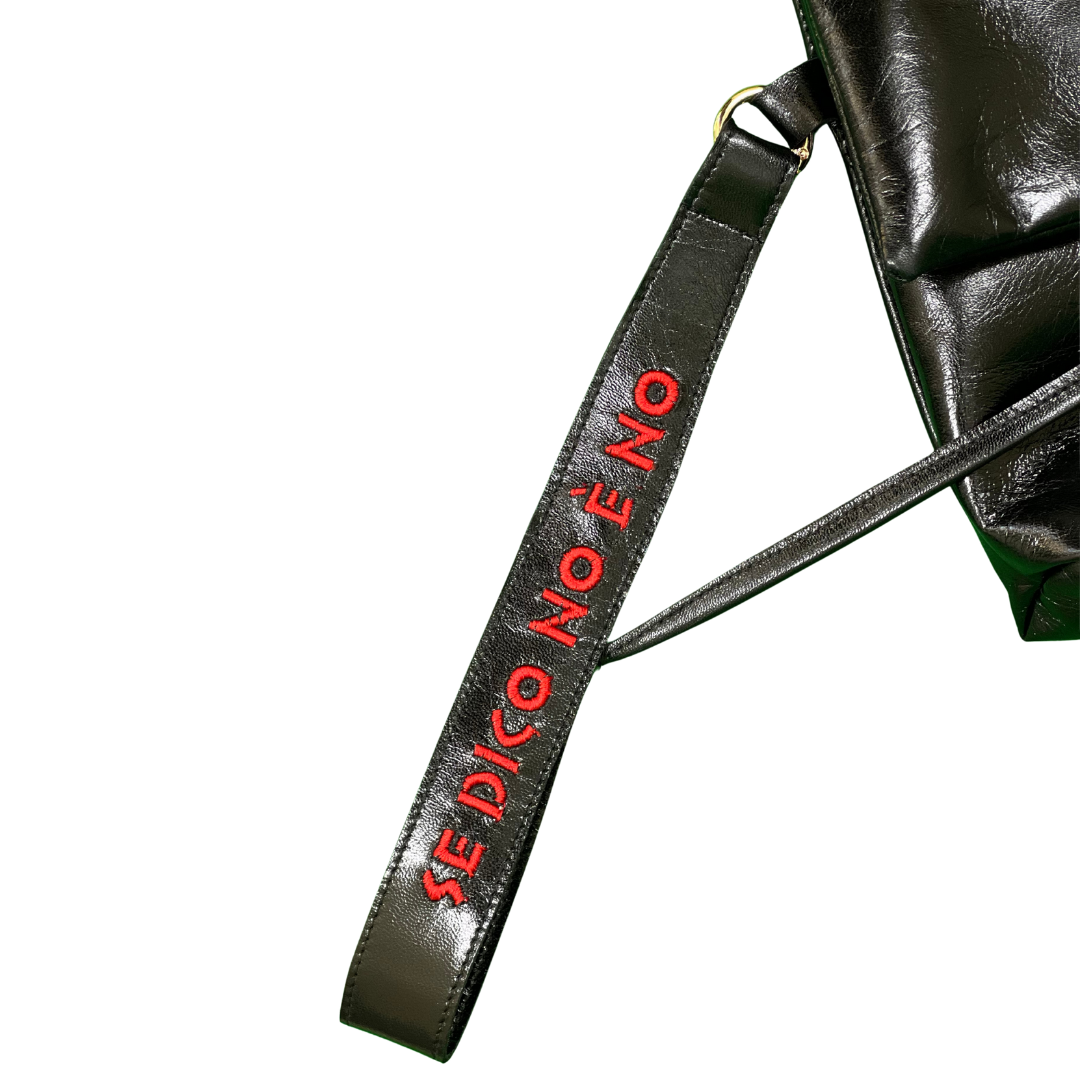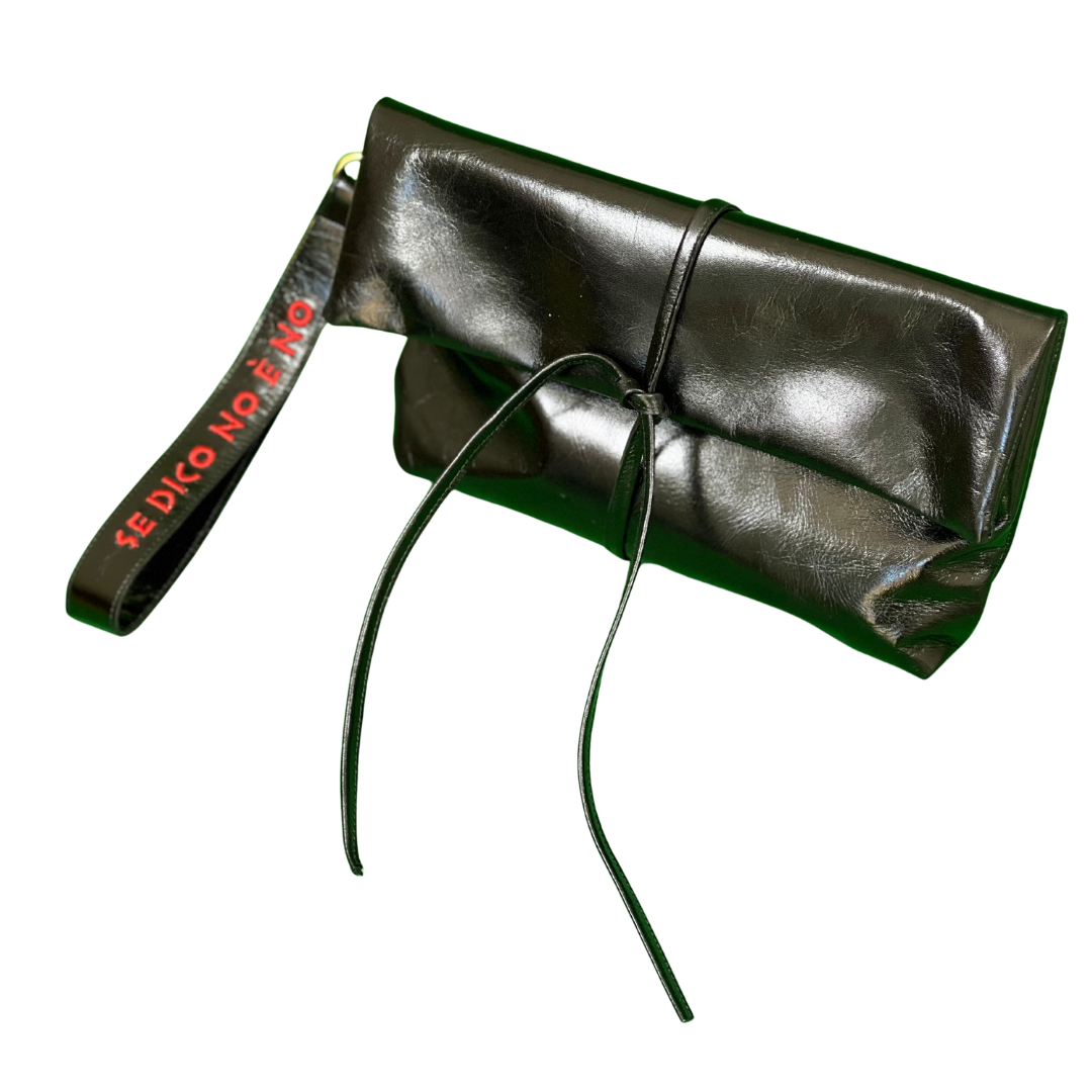 La linea di accessori creata da EVAlab per la It’s Christmas 2025 Edition mette l’accento sul tema del consenso, presentando lo statement sul manico removibile della pochette che è anche borsa da polso.