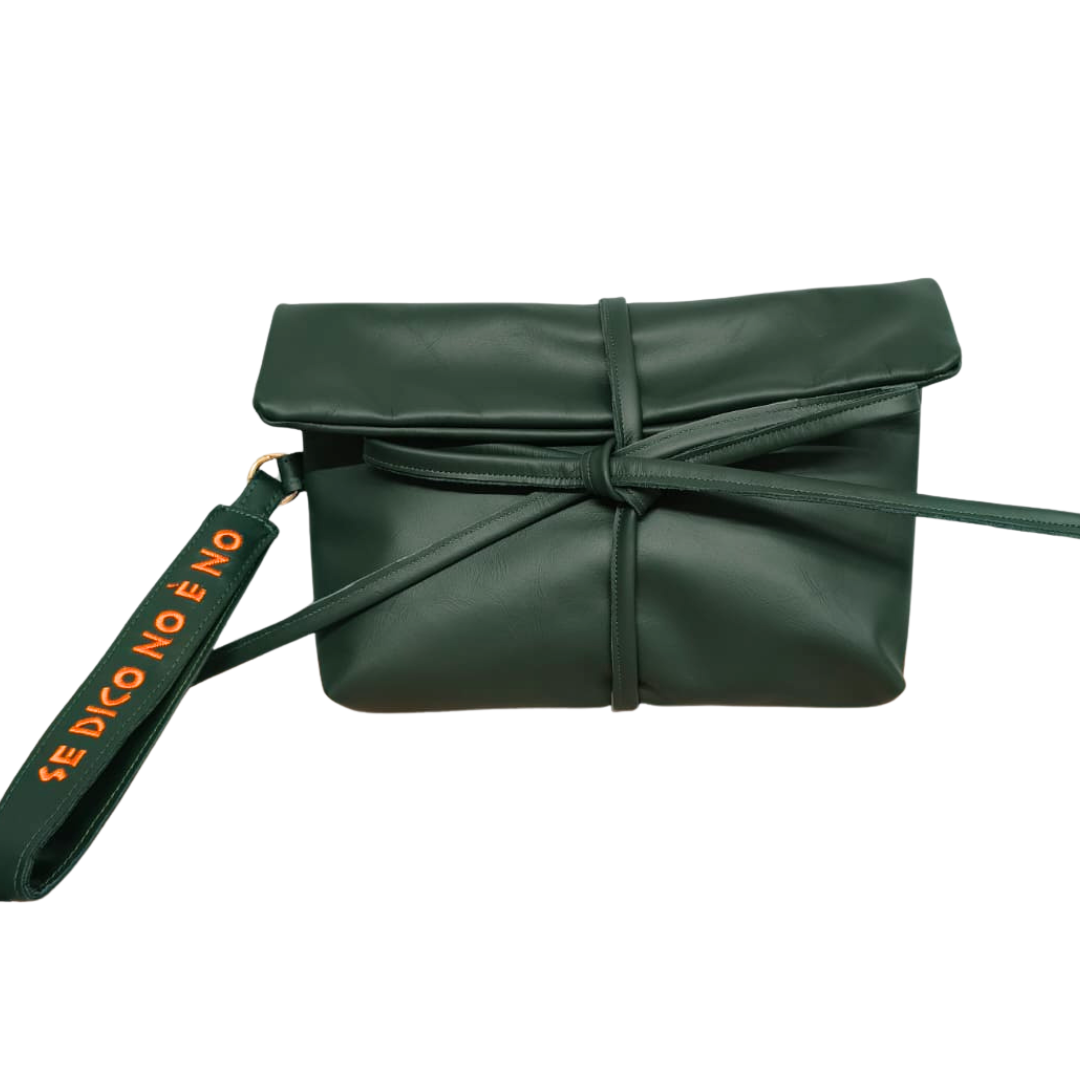 La linea di accessori creata da EVAlab per la It’s Christmas 2025 Edition mette l’accento sul tema del consenso, presentando lo slogan sul manico della pochette che è anche borsa da polso.